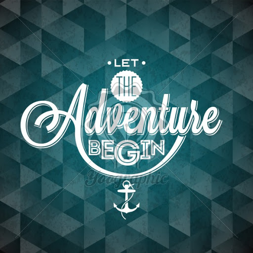 Vector typography design element for greeting cards and posters. Let the Adventure begin inspiration quote on abstract triangle background. Eps 10 illustration.